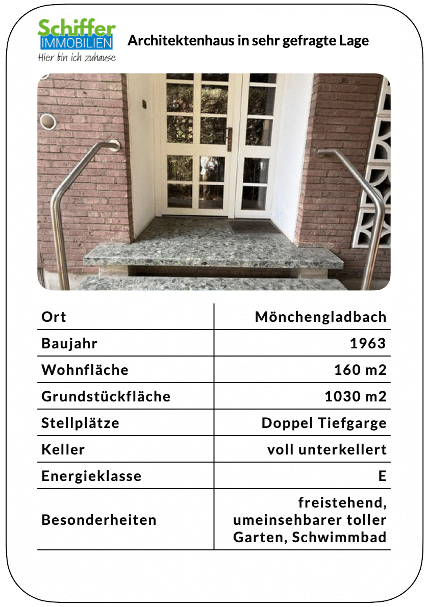 Vertrauen ist beim Immobilienverkauf für Verkäufer entscheidend. Auf dieser Seite finden Sie eine Auswahl der von Schiffer Immobilien erfolgreich verkauften Häuser und Wohnungen in Mönchengladbach und Umgebung. Lesen Sie außerdem, was unsere zufriedenen Kunden über die Zusammenarbeit mit uns sagen. Unsere Referenzen zeigen Ihnen: Mit Erfahrung, Marktkenntnis und persönlichem Einsatz erzielen wir beste Ergebnisse – auch für Ihre Immobilie!
